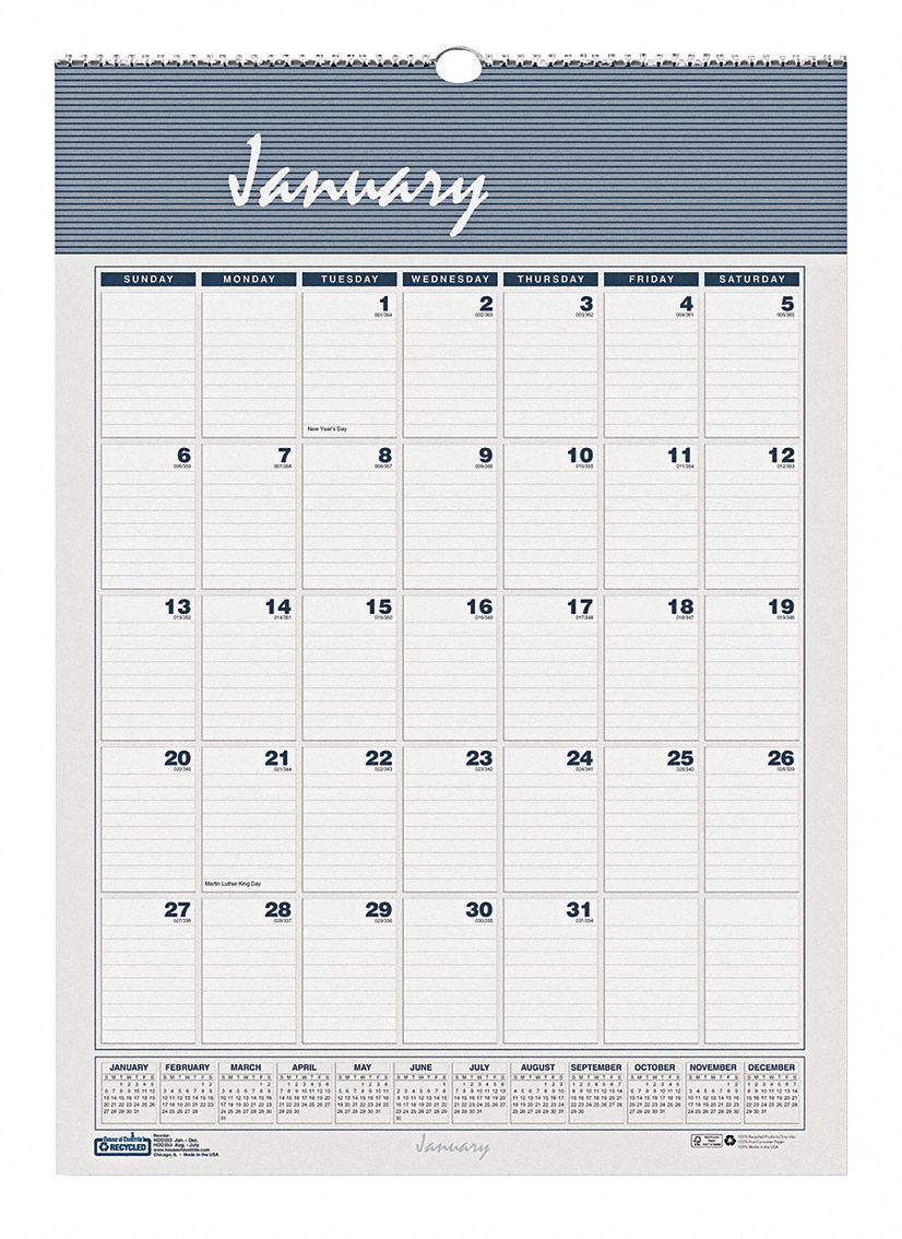 Bar Harbor Recycled Wirebound Monthly Wall Calendar, 6 x 7, White/Blue