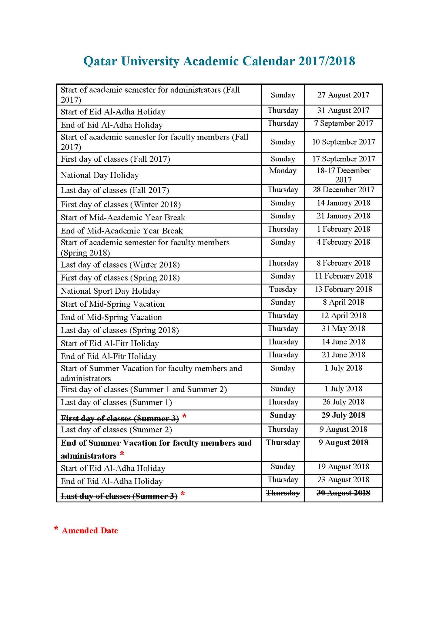 Central Lab. Unit on Twitter "Qatar University Academic Calendar for