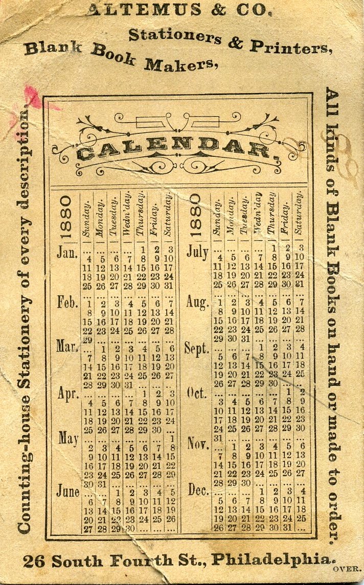 Thoughts of Bibliomaven Altemus Advertising Calendar 1880
