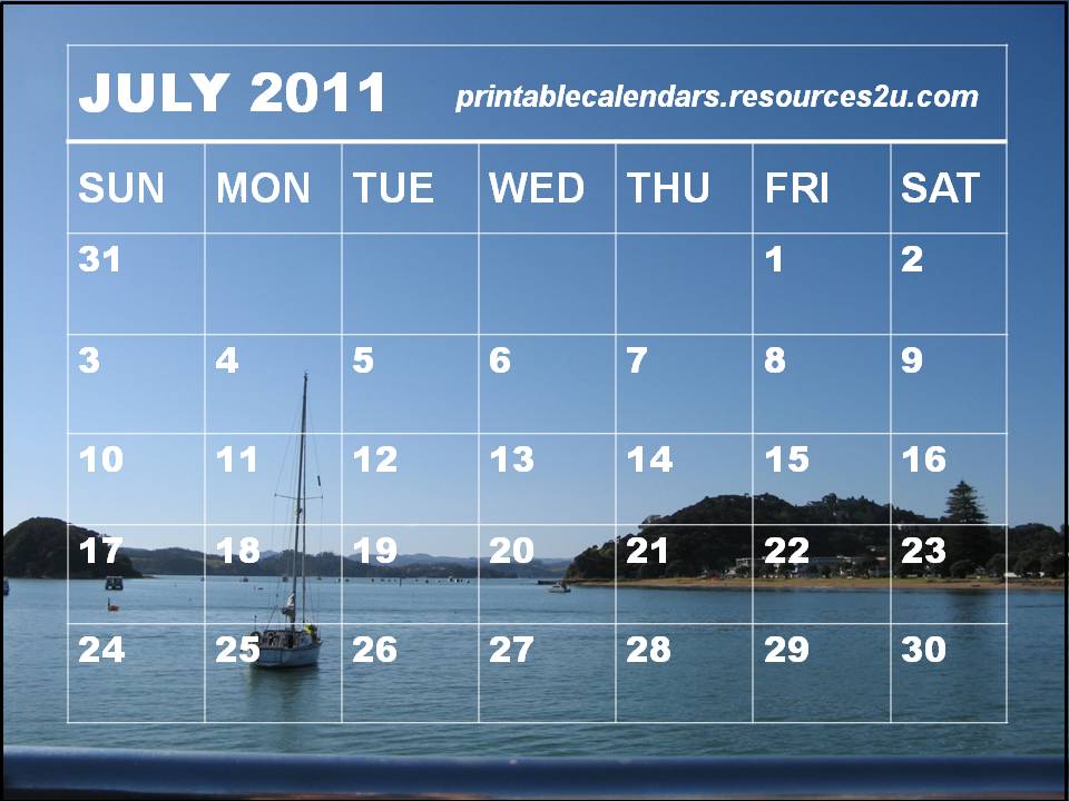 Free Calendars 2015, Bookmarks, Cards Big size July 2011 Calendar design