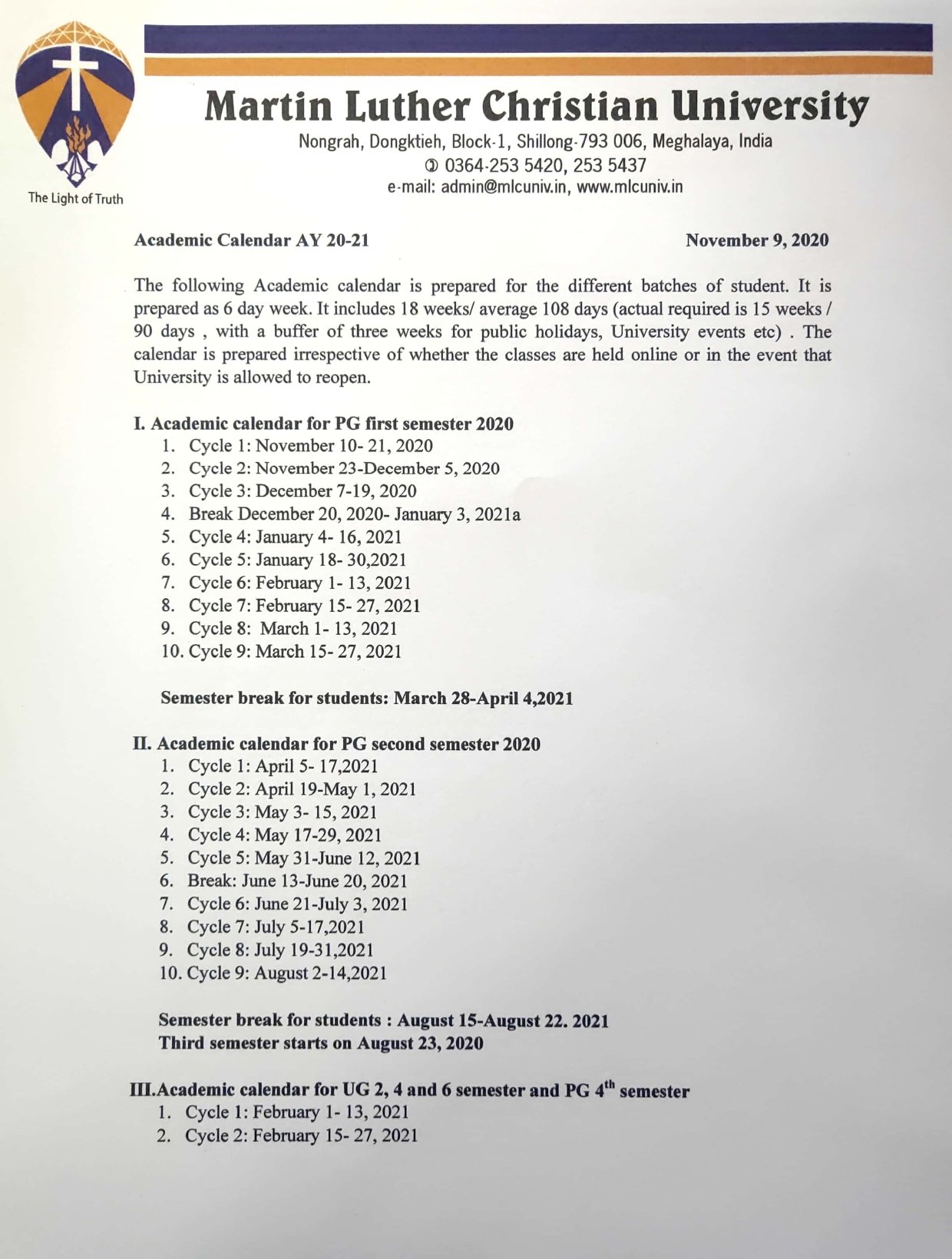 Martin Luther Christian University , Shillong The Light of Truth