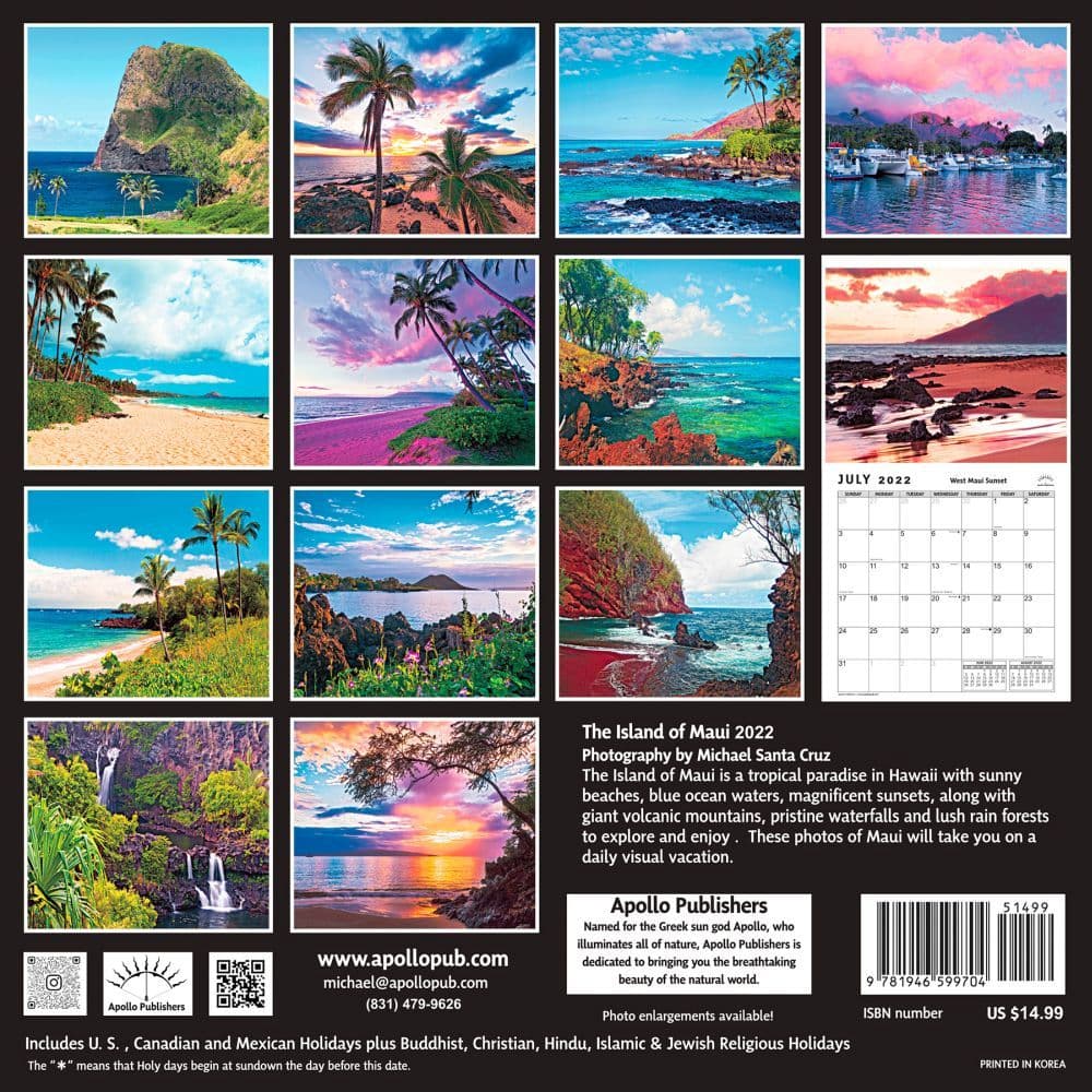 Island Heritage Maui Hawaii 16 Month Calendar 2020