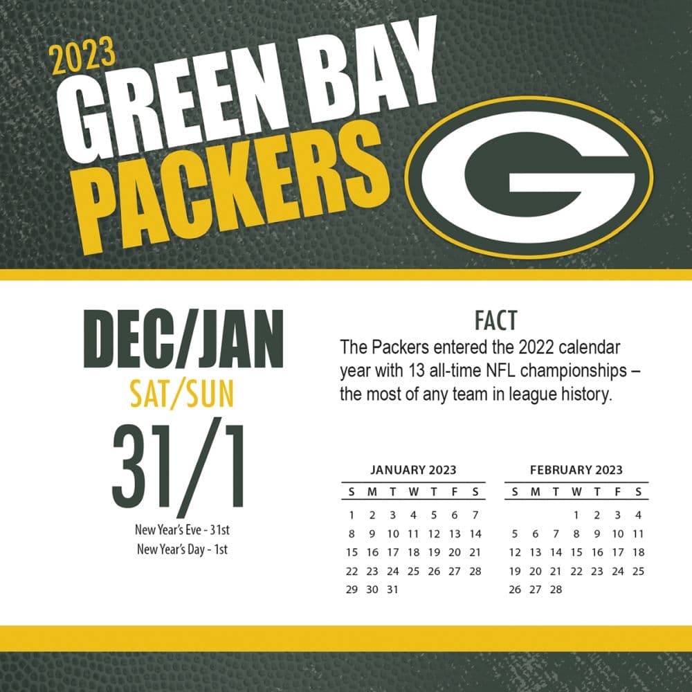 Green Bay Packers Calendars Green bay packers, Green bay packers team