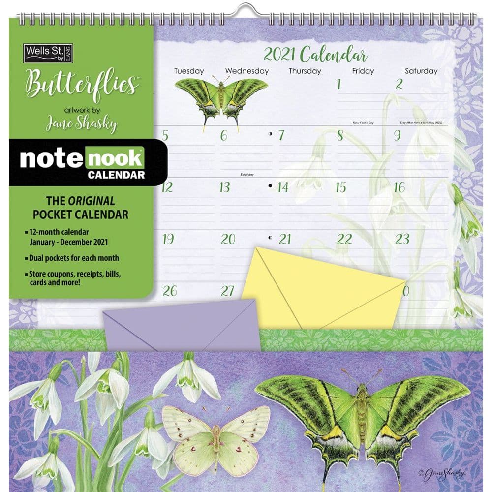Butterflies Note Nook Pocket Wall Calendar by Jane Shasky