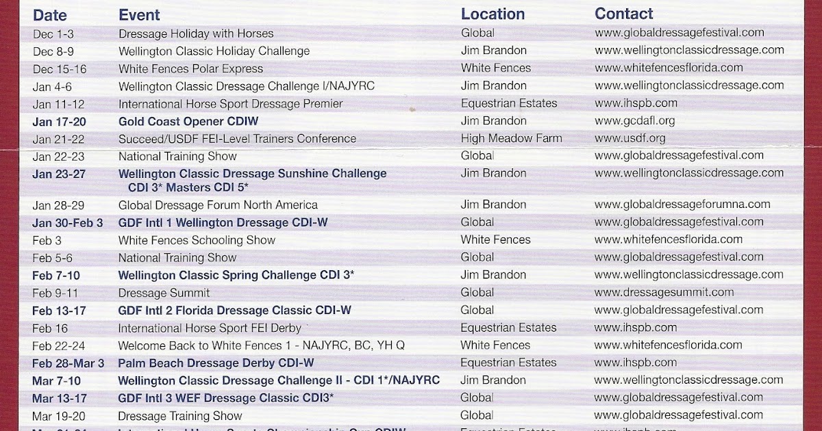 Equestrian Forum of Wellington 2013 Dressage Show Schedule